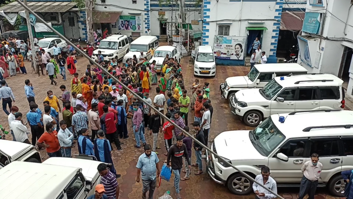 বজ্রা আটুনি ফস্কা গেরো সরকারি অফিসে বাজল শঙ্খ, হল বন্দেমাতরম, তৃণমূল কংগ্রেস জিন্দাবাদ । আসানসোলের মহকুমা দফরের অফিসের ক্যাম্পাস। নীল বাতির গাড়িতে ভরপুর। সেখানেই হাজারো মানুষের ভিড়। না এই ভিড় দুয়ারে সরকার বা লক্ষীর ভান্ডারের ভিড় নয়। যে ভিড় নেতার তথা বিধায়কের অপেক্ষায়। আসছেন পাণ্ডবেস্বরের তৃণমূল বিধায়ক নরেন্দ্র নাথ চক্রবর্তী। হ্যাঁ। তিনি এলেন। সরকারি অফিসের ক্যাম্পাসে ই বাজল শঙ্খ। হল তৃণমূল কংগ্রেস জিন্দাবাদ। তৃণমূল মহিলা কর্মী বললেন — মন্ত্রী মলয় ঘটকের নির্দেশে তারা এসেছেন। নরেন্দ্র নাথ চক্রবর্তী কে সম্মান জানানো হবে।