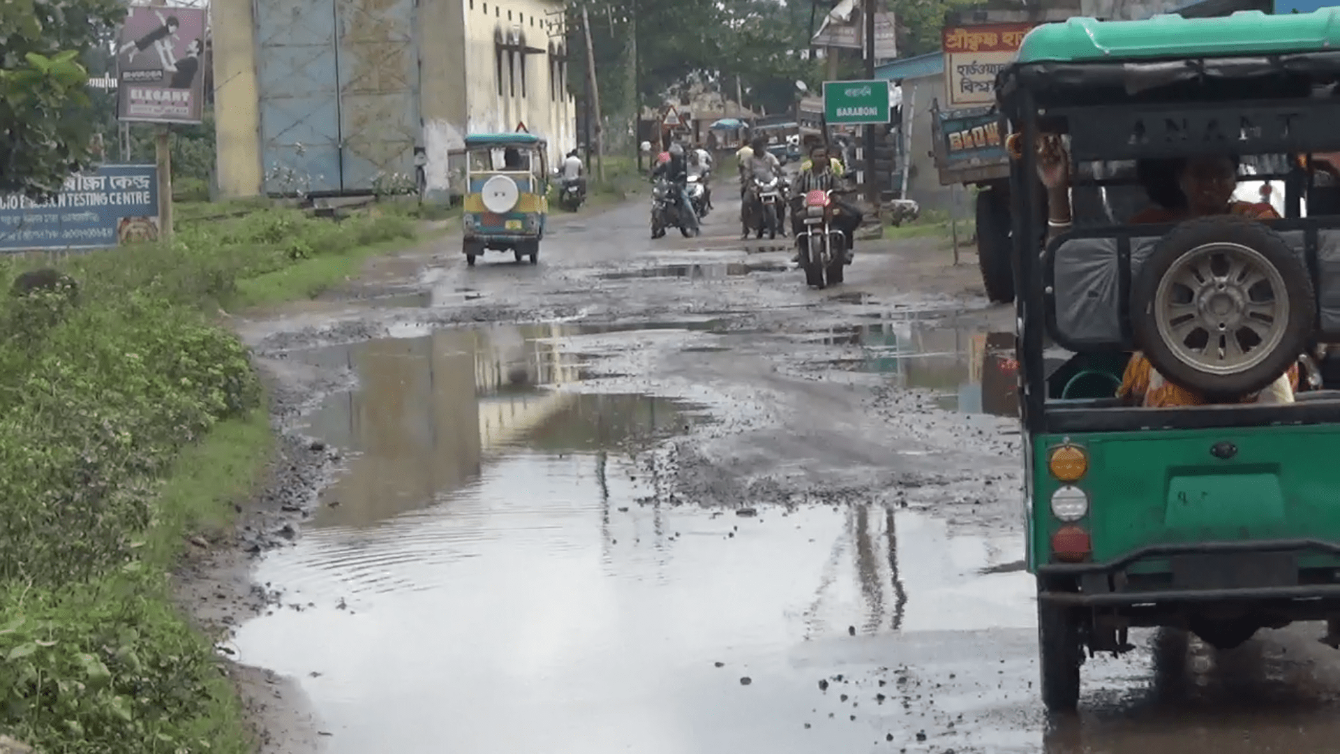বারাবনি রেল গেট থেকে দীর্ঘ প্রায় 5 কিলোমিটার রাস্তা সমূর্ন ভাবে ভেঙে গিয়েছে। তৈরি হয়েছে খানা খন্দ। তাতে আবার জল ভর্তি। বেশ কয়েক মাস ধরে এই কঠিন পরিস্থিতির মধ্যে দিয়ে চলে ফেরা করতে বাধ্য হচ্ছে এলাকার মানুষ। তবু মানুষের আশা ..হয়ত বর্ষার পর ঠিক হয়ে যাবে এই রাস্তা।